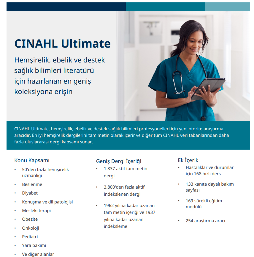CINAHL Ultimate ile erişilebilecek dergilerin listesi için buraya tıklayın.